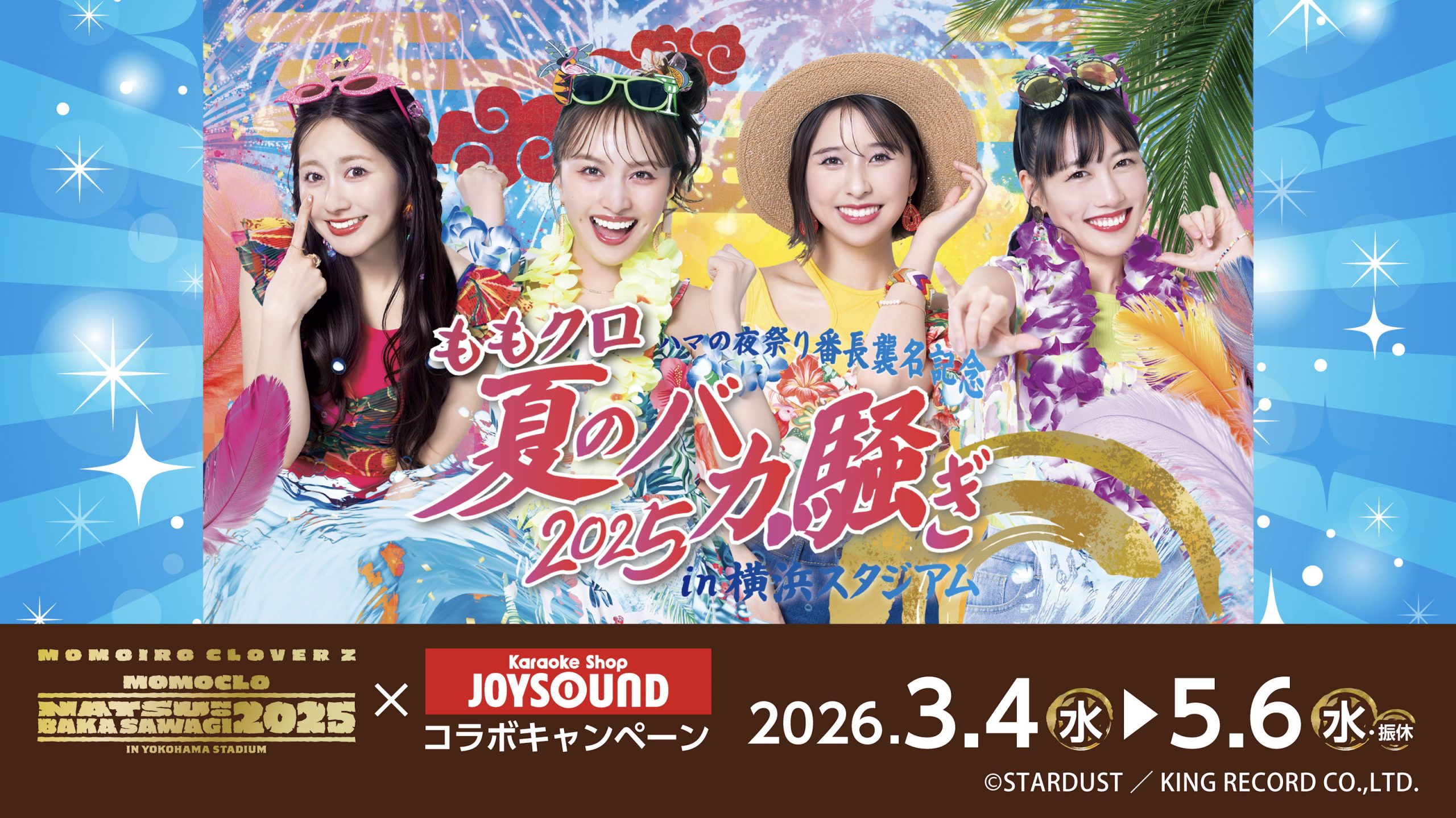 全国にカラオケ店舗・ネットカフェ店舗を展開する株式会社スタンダード(本社:東京都港区、代表取締役社長:小林克章)は、2026年3月4日(水)から2026年5月6日(水・振休)までの期間中、「ももクロ夏バカ2025×カラオケショップ JOYSOUNDコラボキャンペーン」と題し、JOYSOUND品川港南口店(東京)にカラオケコラボルームをオープン!また、カラオケショップ JOYSOUND 66店舗にて、オリジナルポストカード付きコラボドリンクを展開します。